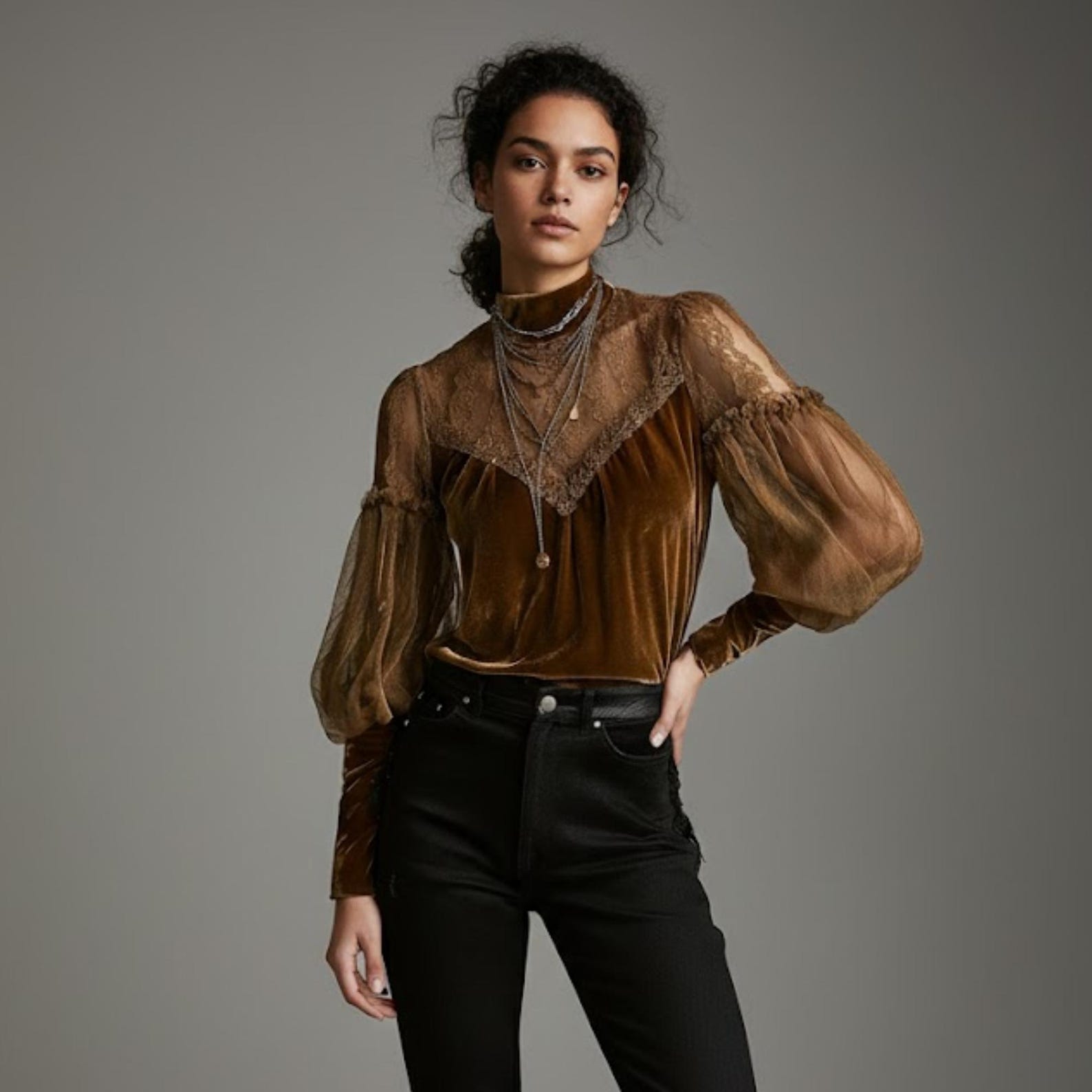 Mary's dramatic purple gown and oversized stiff white ruff set her apart, a bold, slightly outdated fashion reflecting her cunning ambition. Her high red hair and prominent pink makeup further distinguish her from the muted court. The collars, with their long, pointed petals, symbolize her 'serpent under't' nature—a thistle's prickle.