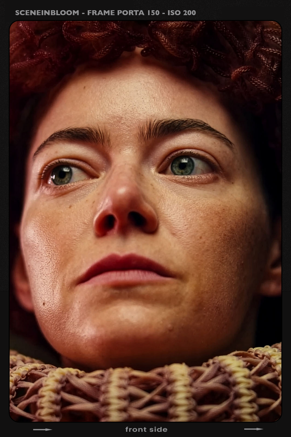 The sheer detail in Michelle's close-up is breathtaking. Her skin, with its natural freckles and pores, feels incredibly real, grounded. Then, the intricate, reddish-brown curls of her hair appear almost woven, mirroring the chunky, handcrafted knitwear that cradles her chin. I'm struck by how costume designer Jennifer Johnson’s vision creates a visual language. This isn't just aesthetic; it's a meticulously crafted symbol of the Andromedan's communal, defiant nature.