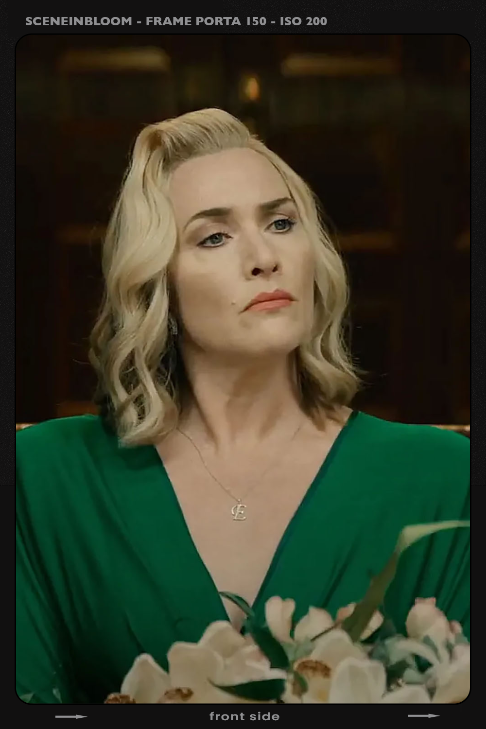 Cinematographer Alwin H. Küchler uses diffused light to soften Elena's features, but her gaze remains unyielding. Framed by manicured greenery and the blurred hints of cymbidium orchids, she is both central and obscured. This soft focus suggests the regime's fragile beauty and obsession with curated facades, reflecting the emotional weight of a leader enmeshed in a controlled world.
